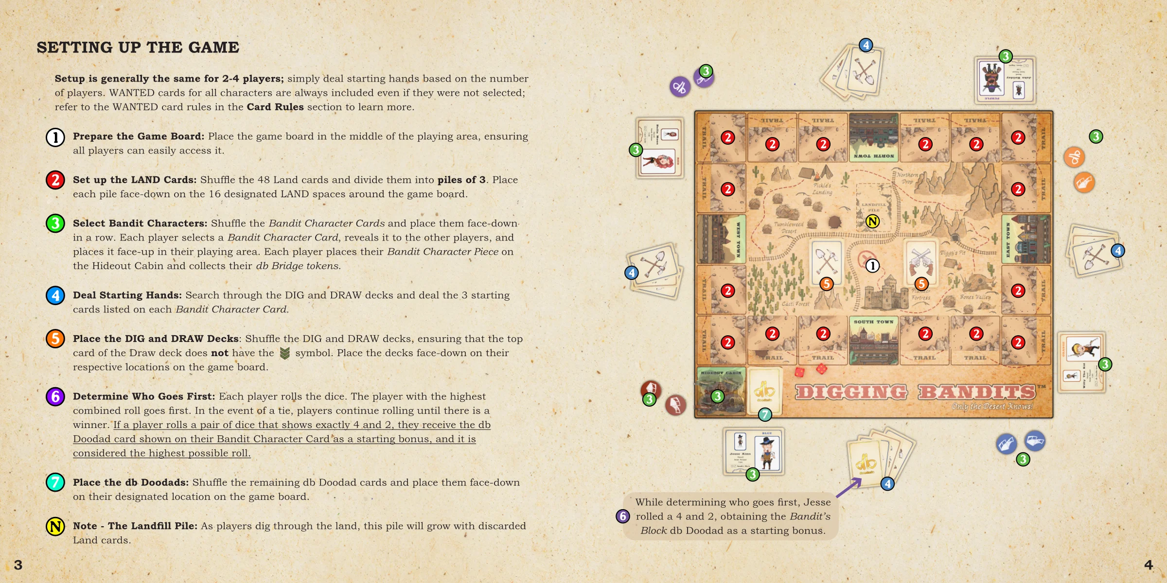 Players move clockwise around the game board by rolling two dice. The digging