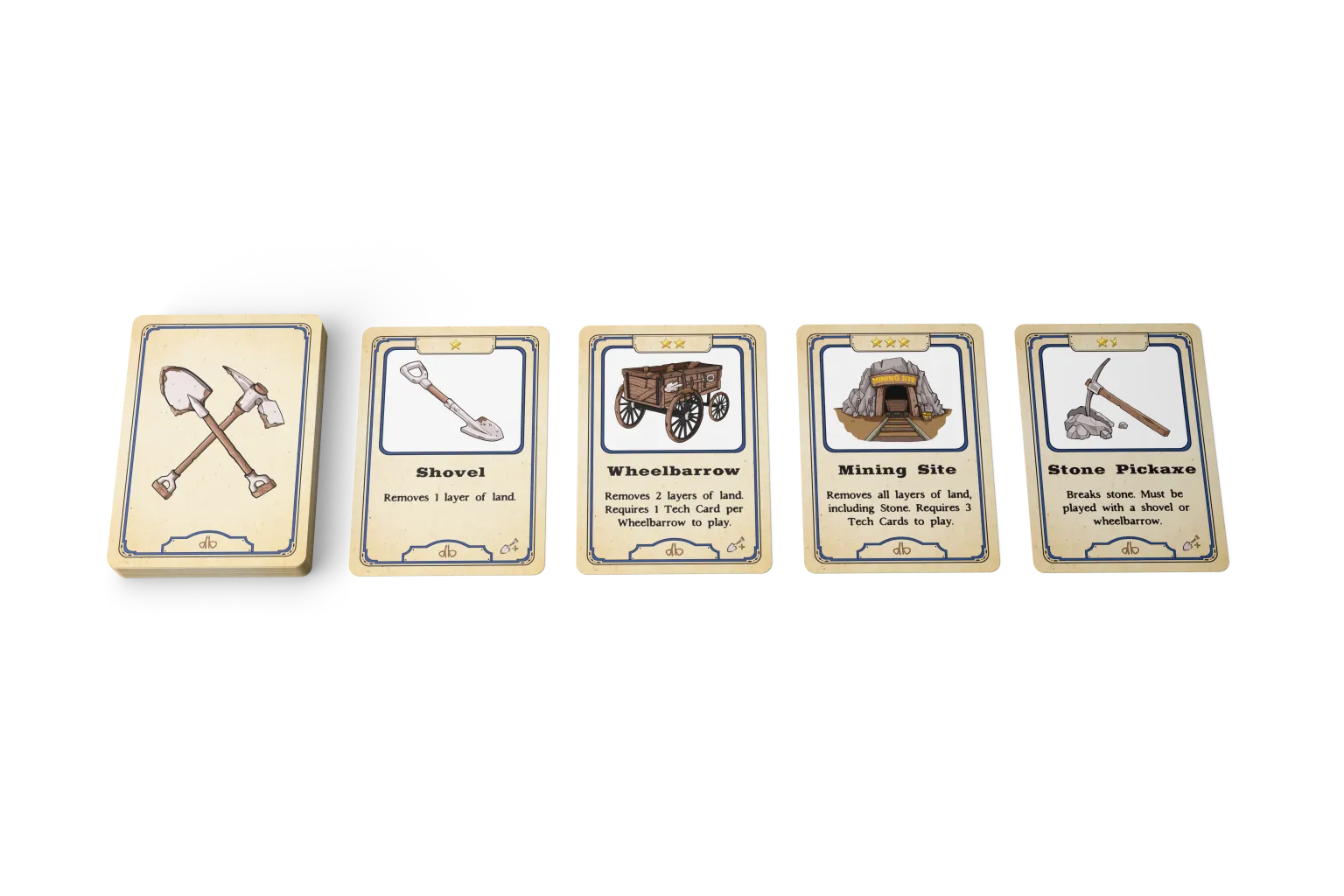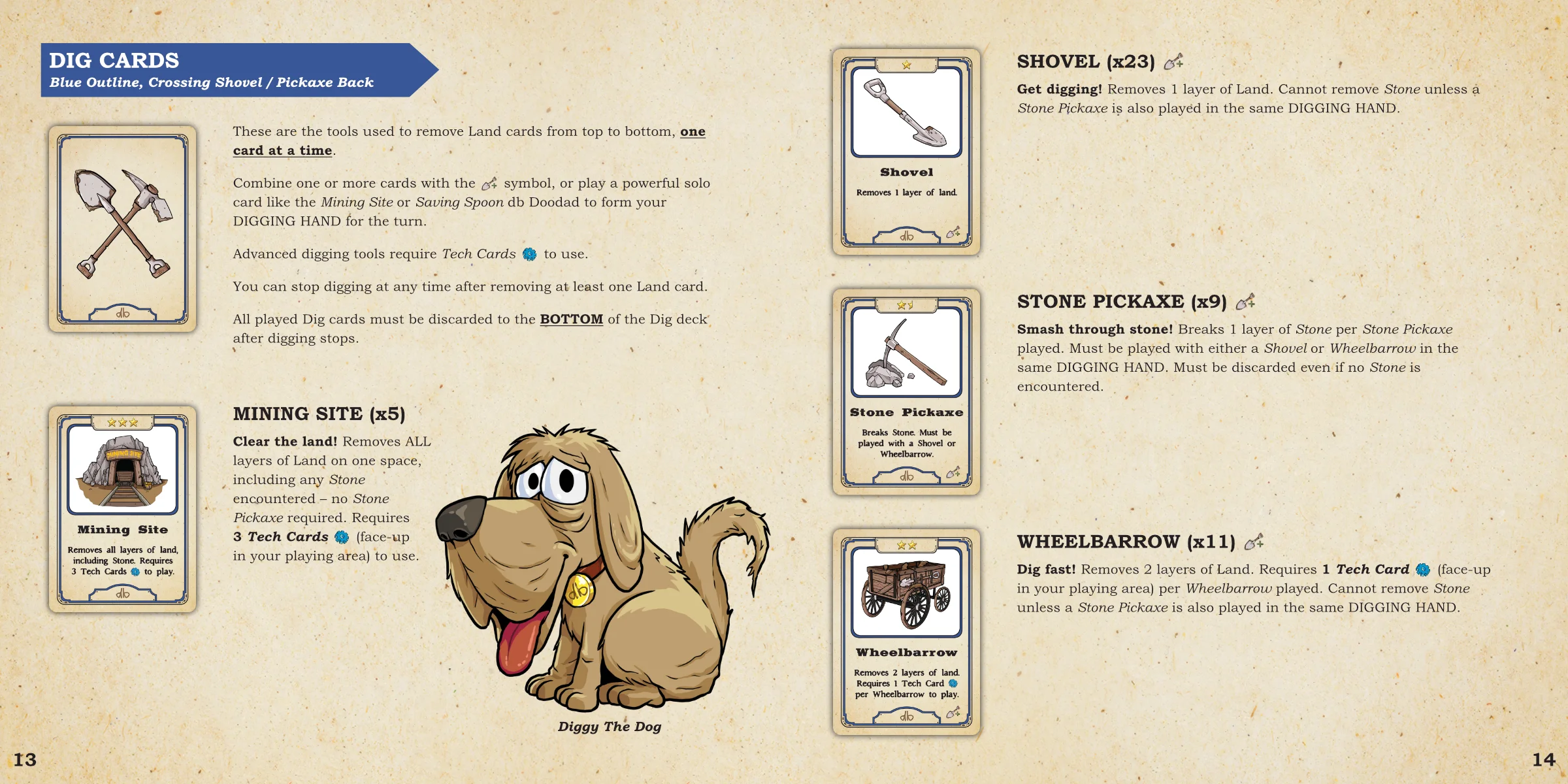 mechanic is central to the game, with players using Dig cards to uncover layers of